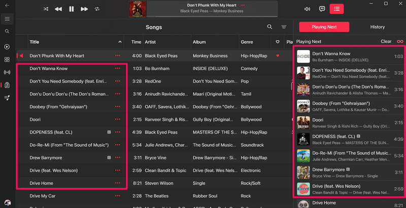 在那里,您可以看到歌曲的列出顺序与 Apple Music 资料库中的顺序相同。