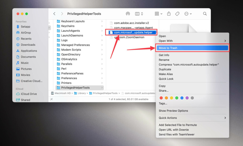10.右键单击com.microsoft.autoupdate.helper.plist并选择移至垃圾箱选项。
