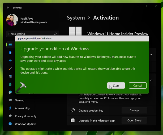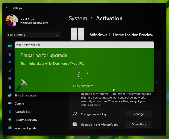 这样,您的系统现已升级到 Windows 11 Pro,并使用您在步骤 4 中提供的正版产品密钥进行激活。