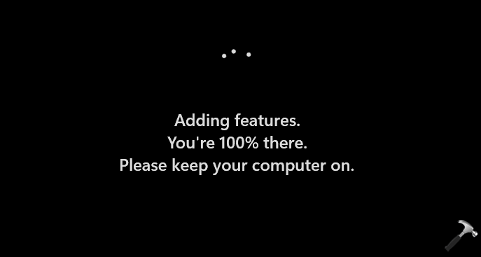 10.重新启动后,您将看到添加功能屏幕,该屏幕应已完成 100%。您的系统现在将第二次重新启动。