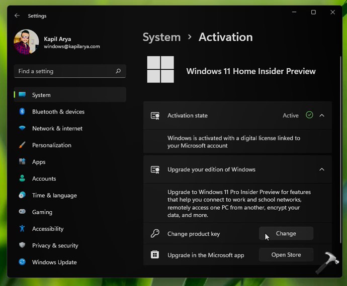 11.第二次重启后,您的系统应该最终升级到Windows 11 Pro。您可以从以下位置确认这一点:设置应用程序 > 系统 > 激活。