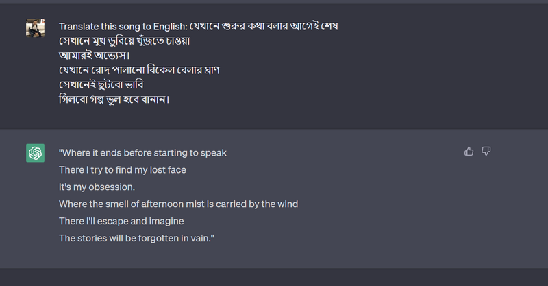 尽管谷歌翻译和其他翻译工具考虑了这些简单的差异,但仍有许多复杂的实例可能会生成错误翻译的句子。然而,当谈到 ChatGPT 时,情况就不同了。