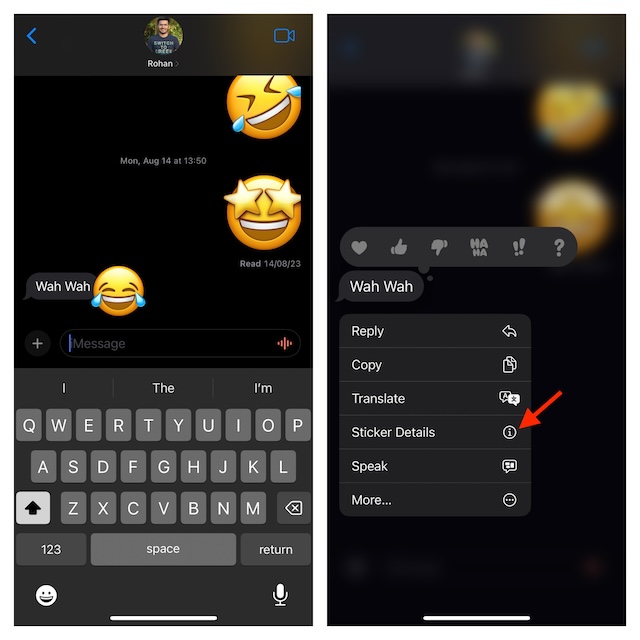 - 然后,按住表情符号,然后选择贴纸详情弹出菜单中的选项。