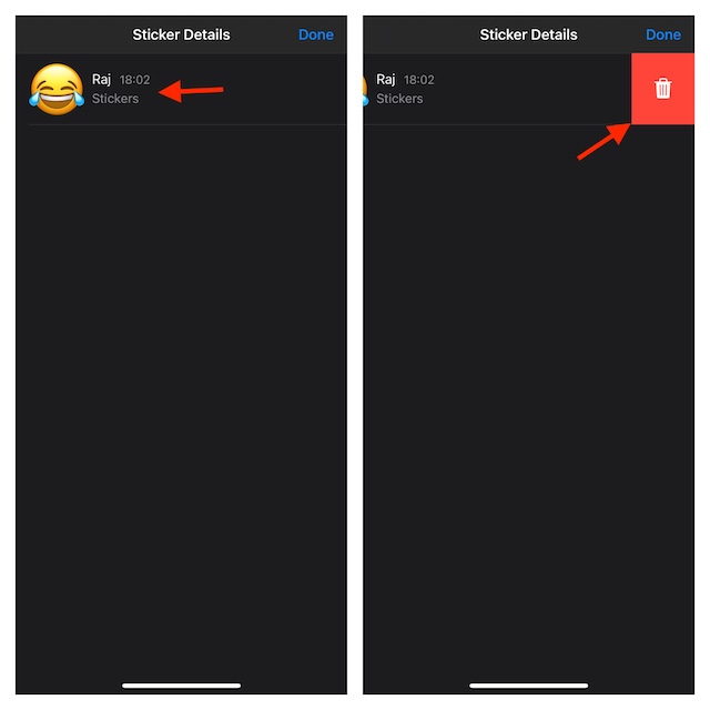 - 要删除表情符号贴纸,只需向左滑动即可。