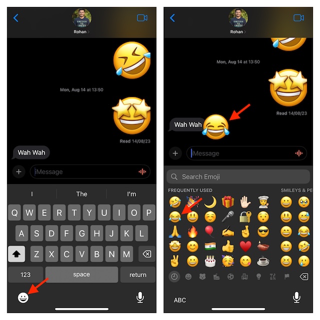 - 转到 iMessage 对话线程,您想在其中使用表情符号作为贴纸。
