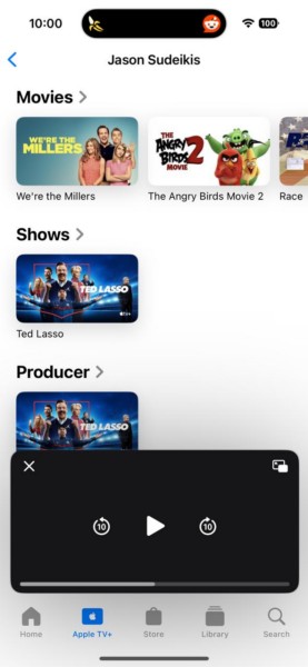 6.除了查看艺术家的名字外,您还可以点击其中任何一个即可打开其投资组合页面播放器进入画中画 (PiP) 模式。在作品集页面上,您可以查看 Apple TV+ 上播放的所有所选演员出演的电影和电视节目。