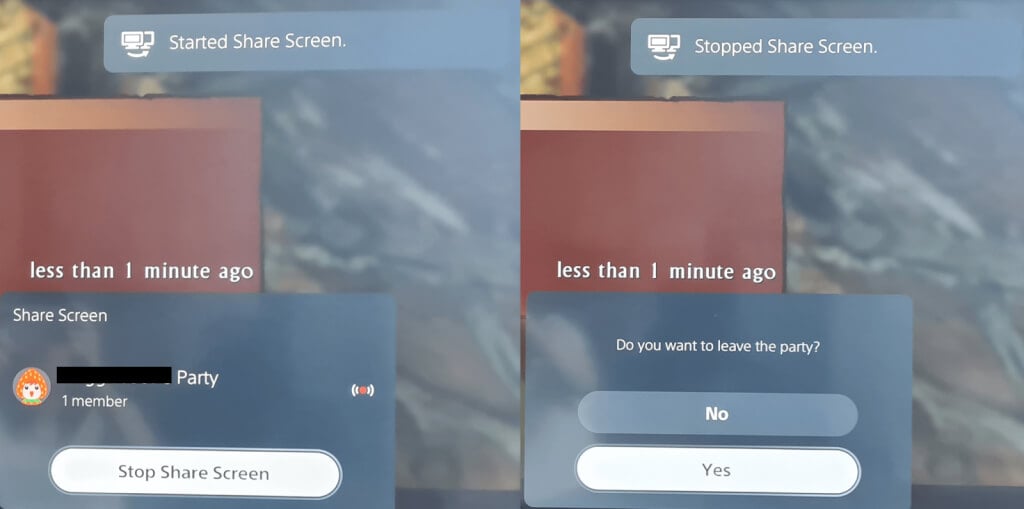 - 您应该会看到一条确认消息,内容为“停止共享屏幕”在屏幕的右上角。您还会看到一个通知窗口,上面写着“你想离开聚会吗?” 所以选择是的如果您已经和朋友玩完游戏或者不如果您只想结束屏幕共享但仍留在队伍中。