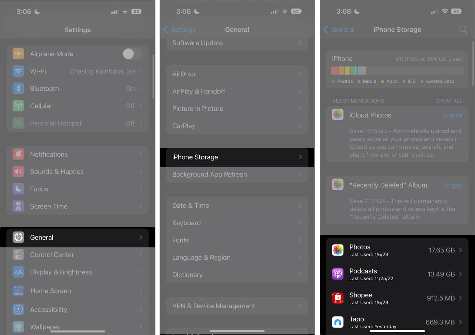 如果您的 Instagram 持续崩溃,尤其是在拍摄大量照片或下载大文件后,此问题可能是由于 iPhone 的存储空间有限造成的。 Instagram 需要大量可用空间才能发挥作用。