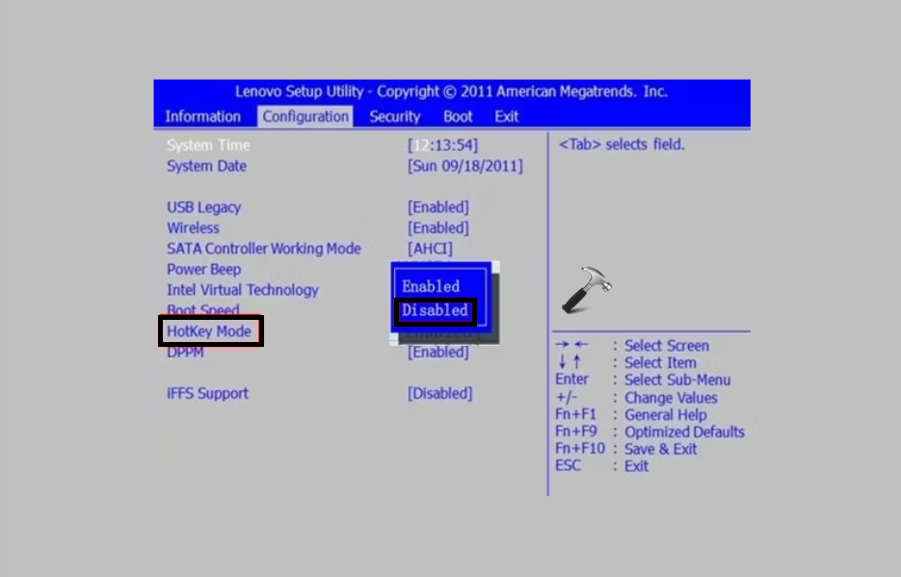 方法 2:使用 BIOS 设置锁定或解锁功能键