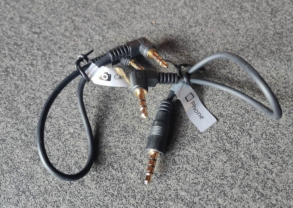 使用这些电缆,您可以将 WM821 连接到摄像机、数码单反相机或智能手机。唯一的例外是 iPhone – 您需要一根闪电适配器电缆将其连接到 Maono WM821,但包装盒中不提供该电缆。