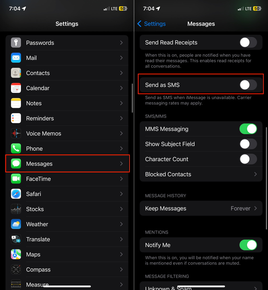 iPhone 的消息应用程序可让您发送短信和 iMessage。这两个功能都内置在同一个应用程序中,当 iMessage 不可用时,iPhone 有时无法以短信形式发送文本。将 iPhone 配置为在收件人的 iMessage 不可用时以短信形式发送消息可能会解决文本传送问题。