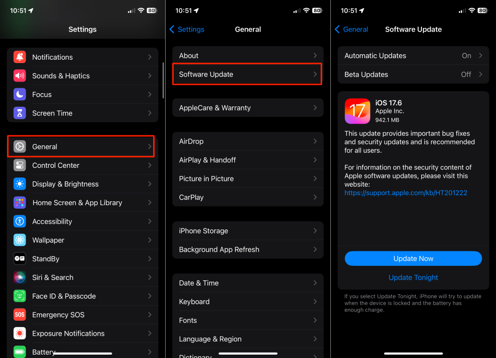 iOS 更新有时会修复消息应用程序。如果您的 iPhone 由于“消息”应用程序中的错误而无法发送短信,请将设备的软件更新到最新版本。