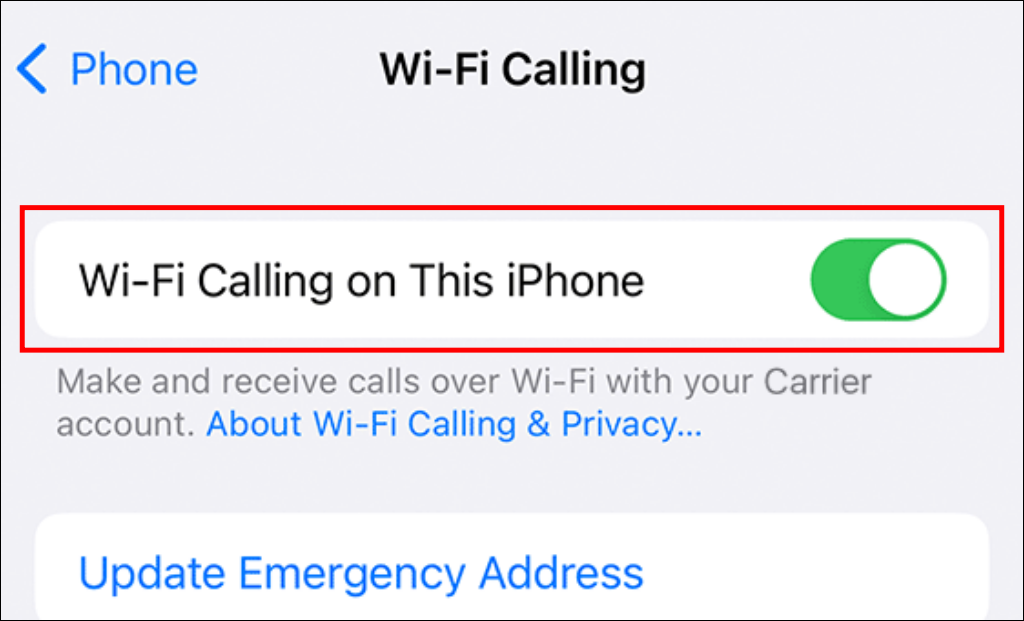 Wi-Fi 通话还会导致 iPhone 和 iPad 上的消息传送问题。如果您正在使用 Wi-Fi 通话,请将其关闭并重新发送短信。