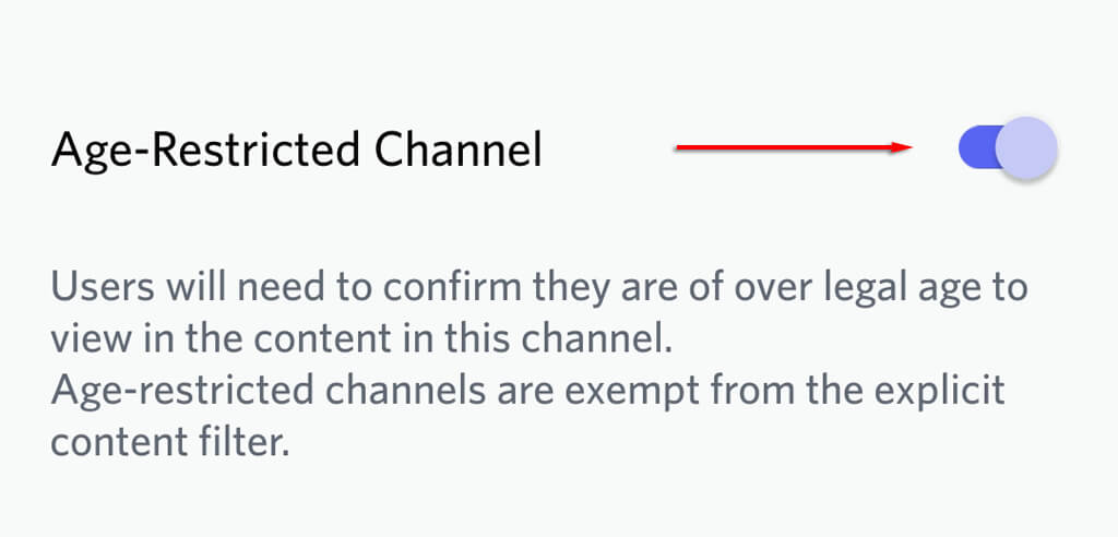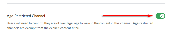 - 在频道设置中,向下滚动并打开年龄限制渠道。