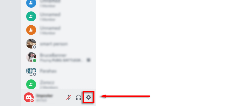 - 在不和谐中,单击用户设置(屏幕左下角的齿轮图标)。