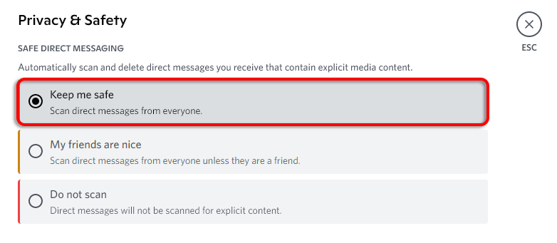 如果您不想接触 NSFW 内容,Discord 可以轻松阻止它。要打开直接消息的显式媒体过滤器: