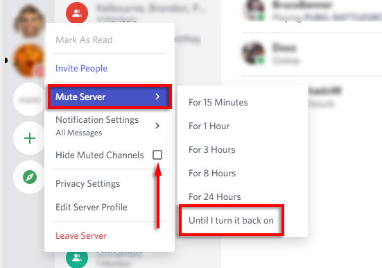 笔记:不幸的是,如果您超过 18 岁,没有内置设置可以阻止 NSFW 频道。但是,您可以将频道静音并隐藏静音频道,以便它们不会出现在您的频道列表中。为此,请右键单击服务器并选择沉默的。然后再次右键单击服务器图标并选择隐藏静音频道。