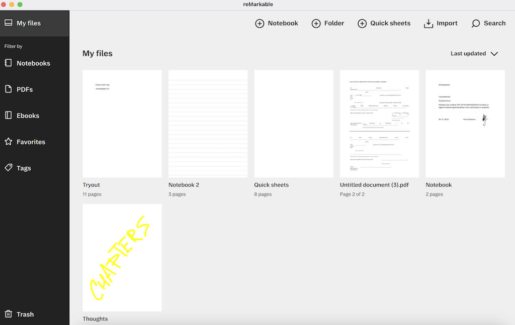 通过桌面应用程序,您可以从计算机访问内容并进行更改,并将更改同步回平板电脑。我发现这对于需要我签名的 PDF 文档特别有用 - 现在我只需将它们传输到计算机上的 reMarkable 应用程序,使用平板电脑添加我的签名,然后在线导出和共享文档。