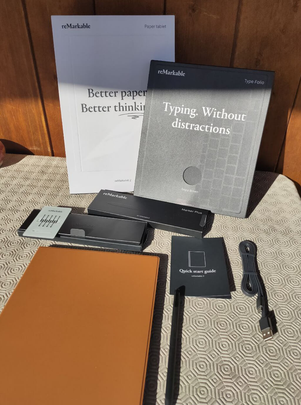 以下是您打开 reMarkable 2 包装时在包装盒中找到的所有物品: