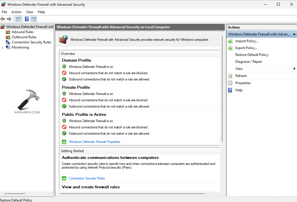 用户重置防火墙设置的第一种方法是使用高级安全性。为此,请按照以下步骤操作。