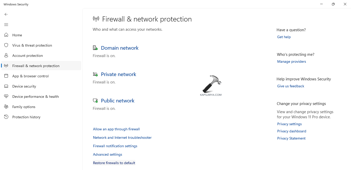 Windows Security 将允许用户轻松地将防火墙重置为其默认设置。请按照以下步骤执行相同操作。