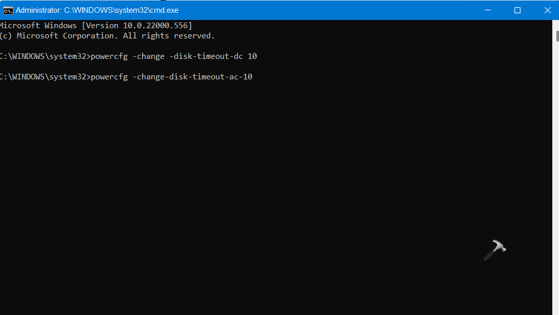 执行这些命令后,关闭命令提示符并重新启动系统。现在,当您的计算机空闲时,您的硬盘将在指定时间内被禁用。