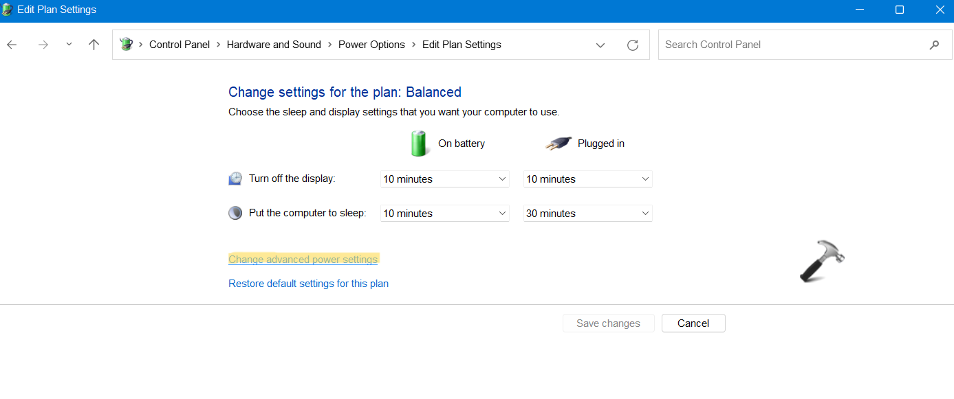 2.到达那里后,单击更改计划设置根据选定的计划窗口。