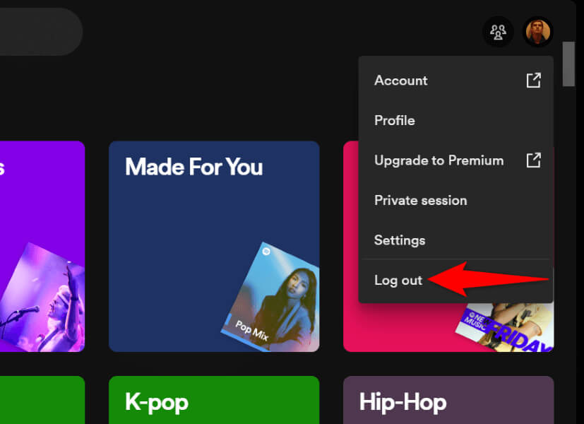 如果您的搜索问题仍然存在,则您的应用程序可能存在登录会话问题。在这种情况下,您可以在应用程序中注销并重新登录您的帐户来解决您的问题。请注意,您需要 Spotify 登录凭据才能重新登录,因此请将这些详细信息放在手边。