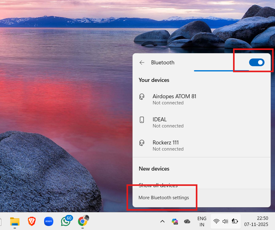 4. 右键单击该图块并选择更多蓝牙设置以配对设备。