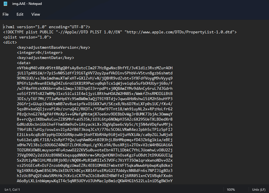 AAE 文件包含 XML 代码行。该代码只不过是有关编辑图像的信息。 Apple 设备可以将此代码转换为图像编辑。源代码编辑器(例如适用于 Windows、Linux、Chrome、Android 或 macOS 的 Notepad++ 或 VS Code)将毫无问题地打开 AAE 文件。您还可以在 Microsoft 记事本应用程序或任何其他文本编辑器中查看代码。