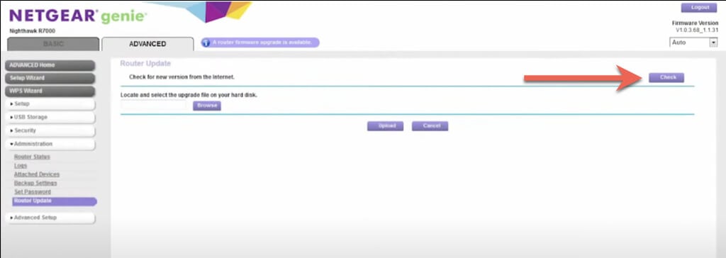 为此,请访问路由器的控制面板并查找路由器 更新选项卡或选项。然后,在线检查更新或从路由器制造商的网站上传固件文件。