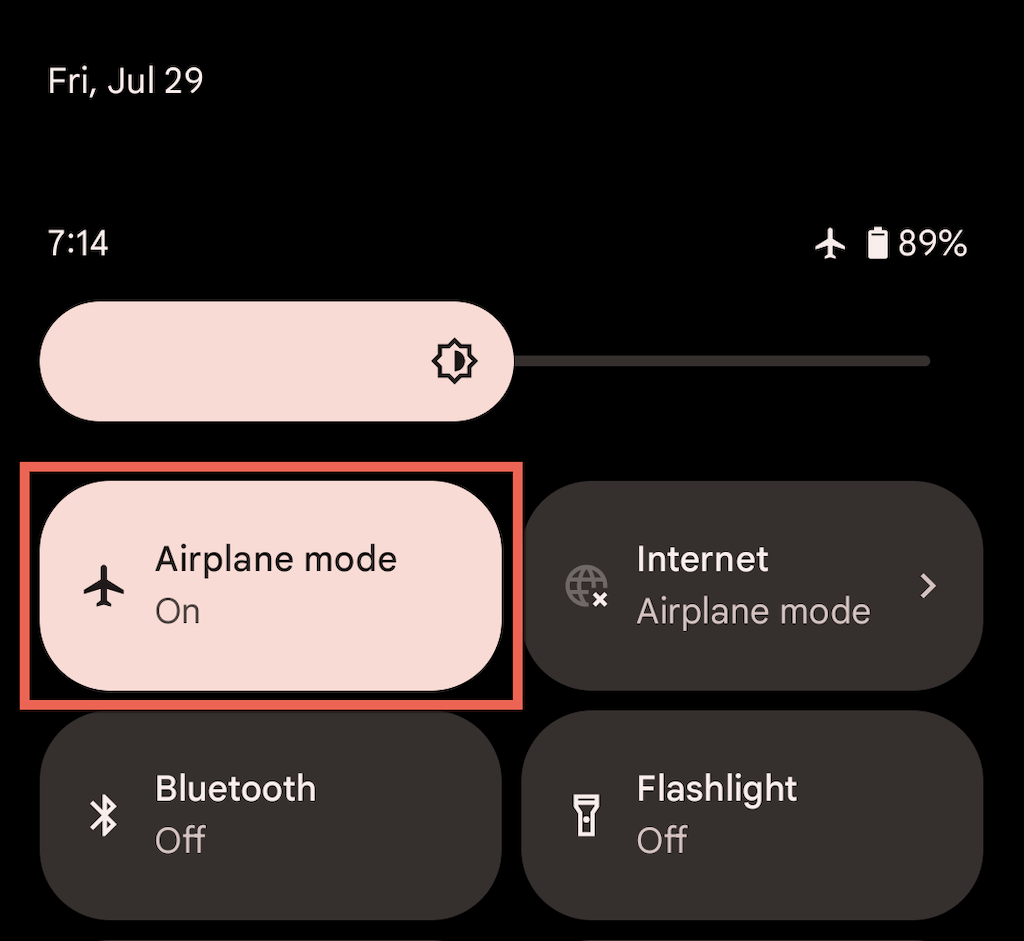 为此,请从屏幕顶部向下滑动以调出快速设置窗格。然后,点击飞行模式平铺,等待几秒钟,然后再次点击它。