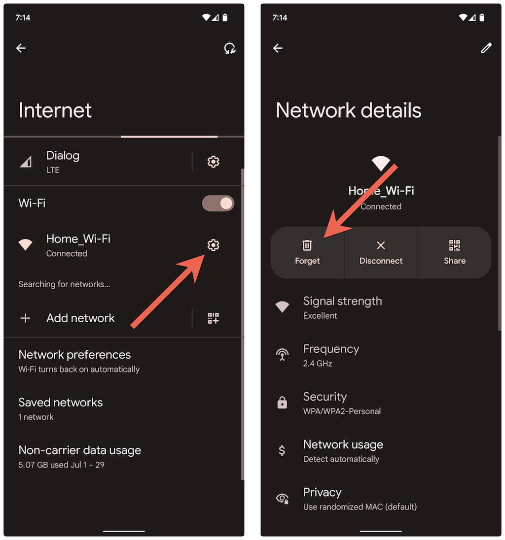 在 Android 上删除并重新连接无线网络是另一个快速修复方法,可以解决频繁的 WiFi 断开连接问题,主要是当问题仅发生在该网络上时。为此: