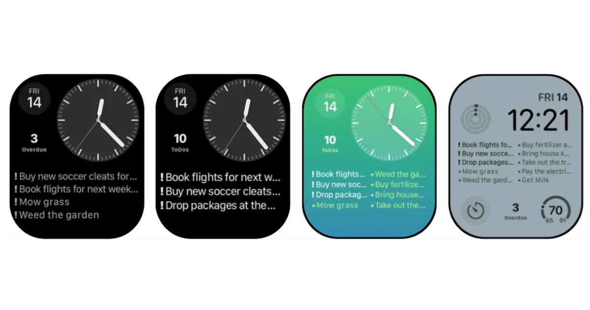 循环复杂功能可以指示当天逾期或即将到来的提醒数量,为您的任务提供快速快照。此外,您可以选择使用背景颜色或坚持使用标准黑色背景,并调整提醒文本以确保可见性。