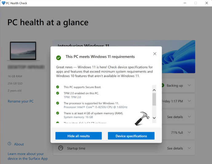 使用 PC Health Check 应用检查 Windows 11 资格。