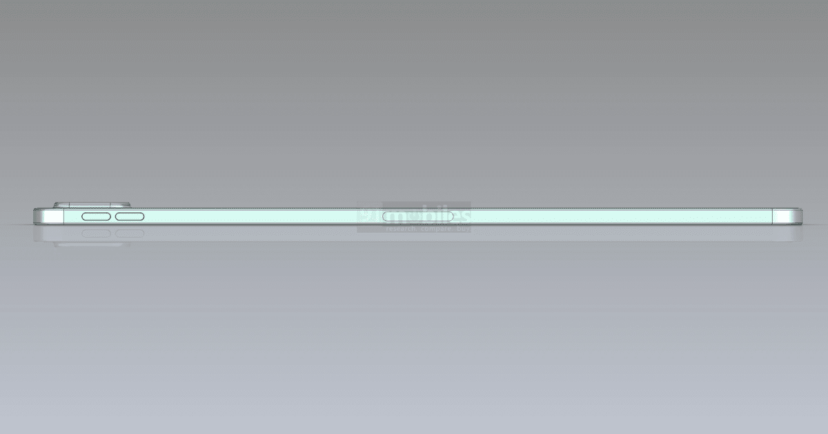 洩露的CAD渲染圖,共享由 91Mobiles 製作,展示了 12.9 英寸 iPad Air 的有趣設計。儘管保留了第四代和第五代型號的熟悉美感,但更大的佔地面積可容納更大的 12.9 英寸顯示屏。該平板電腦的正面與 12.9 英寸 iPad Pro 相似,但邊框稍厚,讓人想起 10.9 英寸 iPad Air。