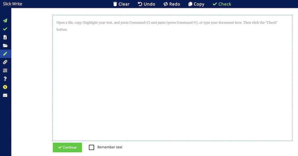 Slick Write 是一款免費的寫作工具,適用於任何類型的寫作,無論您是學生、博主、作家還是 SEO 專家。要檢查您的書寫情況,請導入包含文本的文件或直接在 Slick Write 網站上書寫。完成後,Slick Write 會生成一份報告,其中包含有關文本和圖表的詳細信息。您可以使用該數據來跟踪字數、段落長度和句子結構。