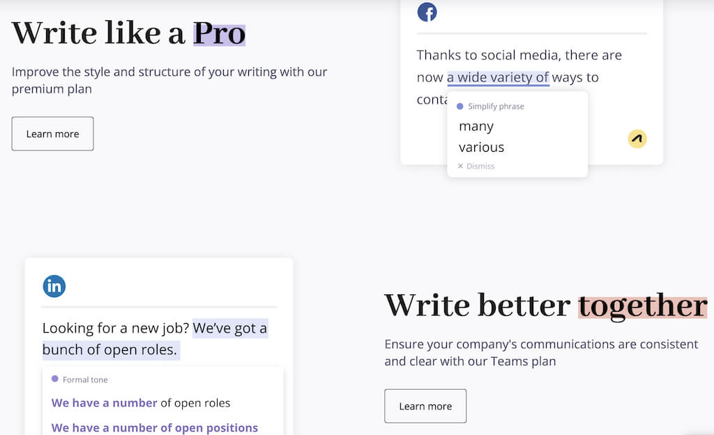 - Grammarly 不會重寫你的句子:Grammarly 旨在為您提供有關如何改進寫作的有用建議,但它不會為您重寫句子。如果您是初學者,需要更基礎的語言支持,則需要尋找不同的檢查工具。