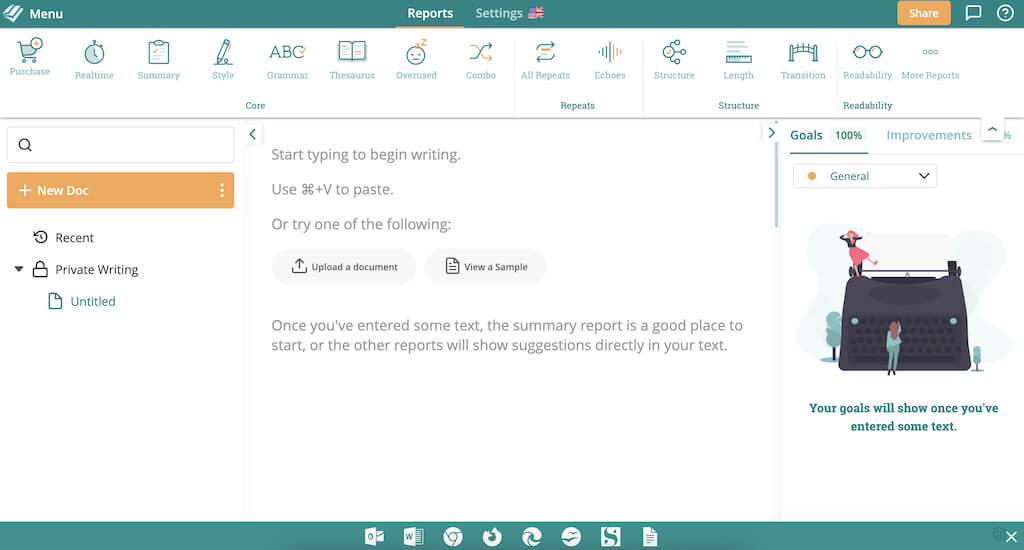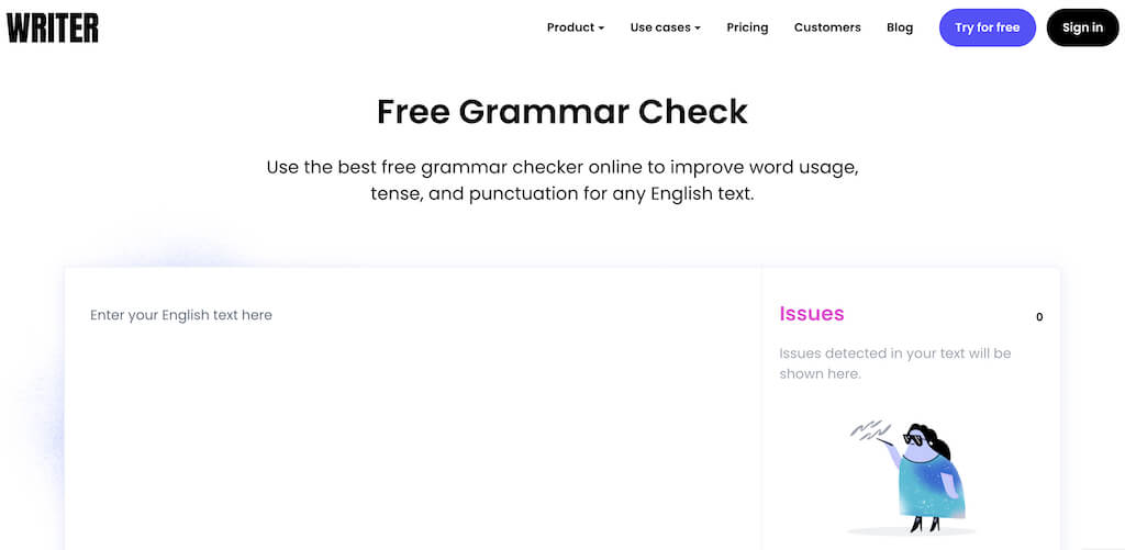 對於任何尋求免費語法檢查以幫助他們寫得更好的人來說,Writer 是一個很棒且簡單的工具。 Writer 使用人工智能寫作助手,幫助您糾正拼寫和語法錯誤並提高文本的可讀性。與此列表中的其他高級語法檢查器類似,Writer 還提供有用的建議,例如同義詞和短語,您可以使用它們來替換重複的單詞和不適合您的寫作風格的單詞。