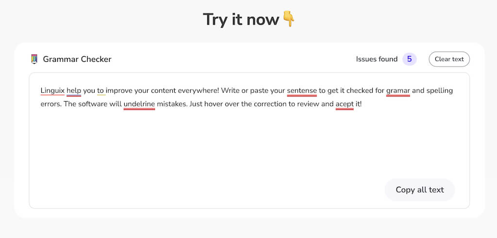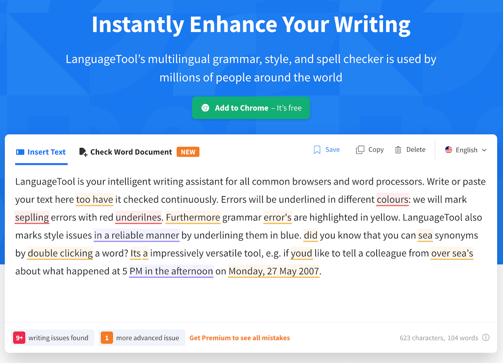 該基於網絡的工具易於使用,並在主頁上為首次使用的用戶提供了操作指南。句子檢查使用先進的算法,幫助您避免連續句子、錯誤放置的單詞以及其他語法和拼寫錯誤。