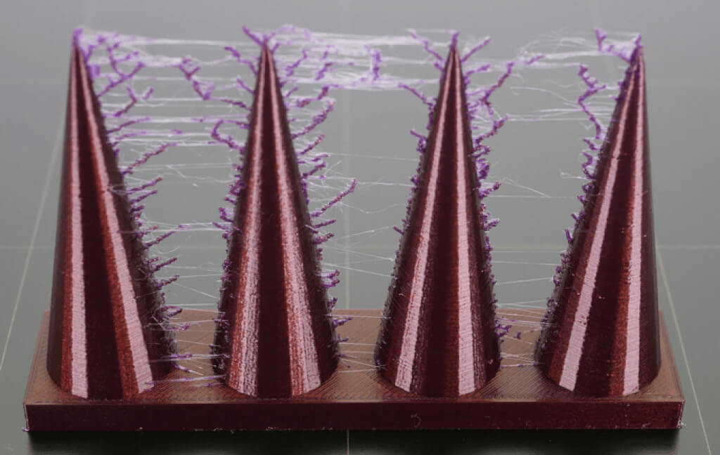拉絲也稱為滲色,是破壞 3D FDM 打印件的最常見問題之一。當擠出機從一點移動到另一點時,模型上會形成細小的絲狀塑料碎片。