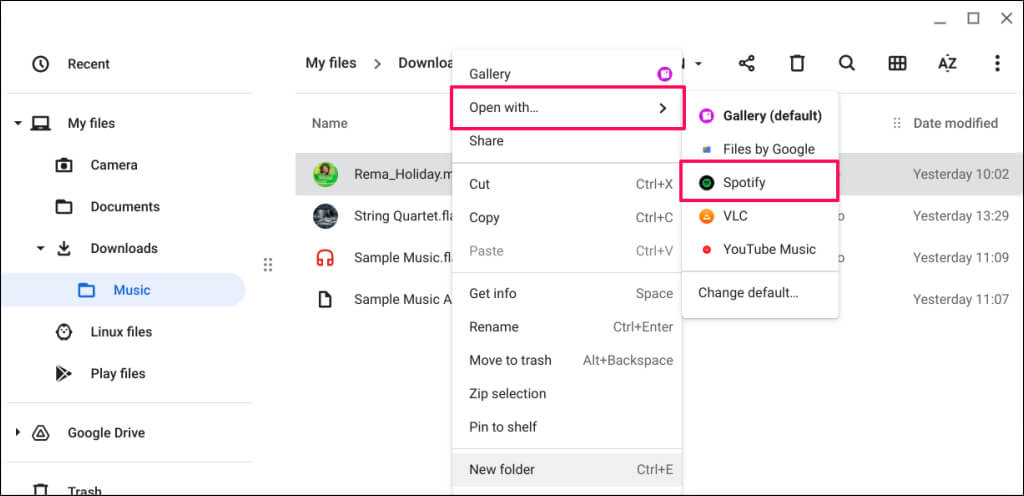 您可以使用 Chromebook 的默認文件管理器和圖庫應用來播放音樂文件。但是,這些內置應用程序缺乏第三方音樂應用程序中可以找到的高級功能。
