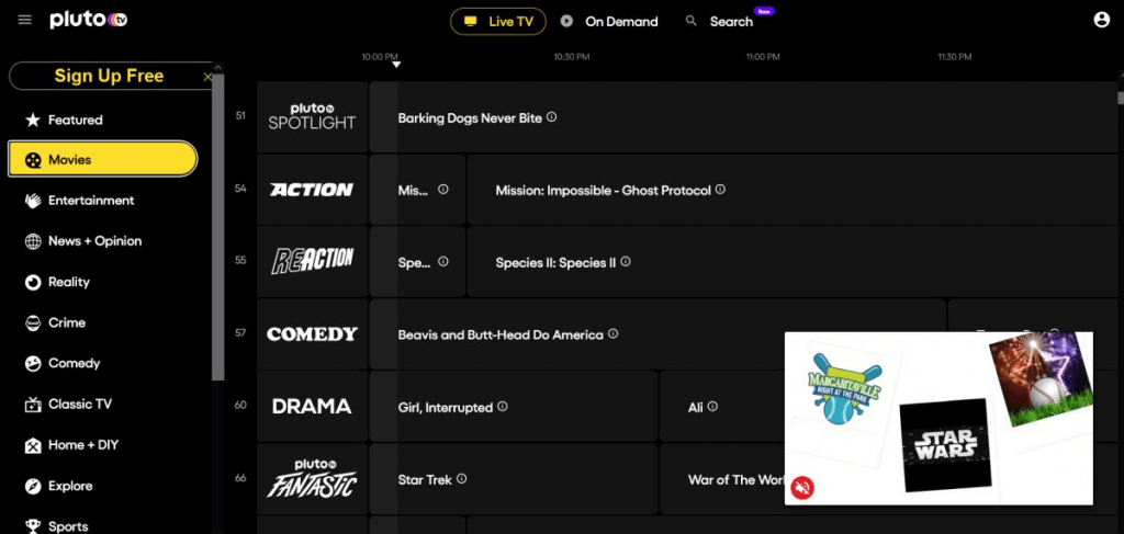 Pluto TV 是一項免費的直播電視流媒體服務,有大量不同的頻道可供選擇,播放電影、節目、真人秀、新聞、紀錄片和音樂。您可以在許多不同的渠道中找到這些內容,並按類別劃分。冥王星適合每個人,您經常可以找到精彩的經典電影、懷舊的電視節目或有趣的紀錄片等等。 Pluto 最好的部分是它始終免費,但包含廣告。
