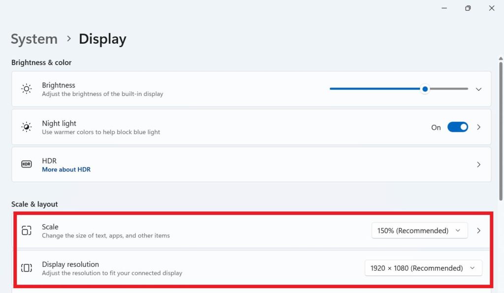 - 如果沒有,則單擊下拉箭頭圖標並選擇 Windows 建議的推薦設置。