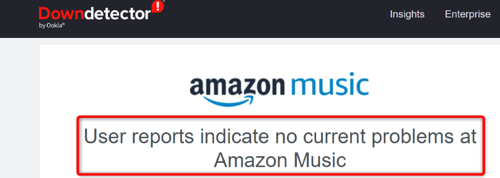 檢查服務是否遇到問題的一種方法是訪問類似的網站。該網站將告訴您亞馬遜音樂是否面臨中斷。