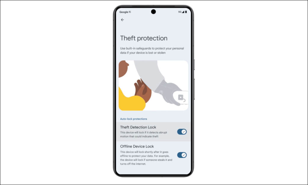 盜竊檢測鎖系統使用人工智能來檢測 Android 設備上的類似盜竊的動作。假設用戶的手機被試圖跑步、開車或騎自行車的人從手中搶走。如果人工智能驅動的盜竊檢測系統檢測到搶奪後逃跑的情況,就會啟動“離線設備鎖定”。