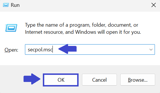 1. 按 Windows 鍵 + R。鍵入 Secpol.msc,然後單擊“確定”。