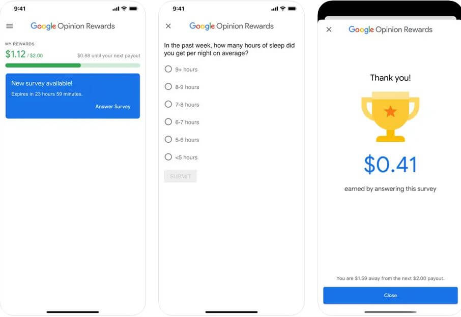 Google 意見獎勵是在一段時間內賺取少量現金的簡單方法。它為您提供參與調查,並為每個調查獎勵約 10 - 20 美分。這個應用程序的好處是,即使您沒有資格參加調查,您仍然會收到一些補償。