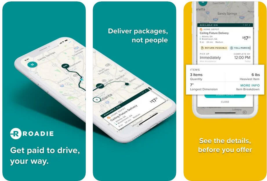 如果您有一輛大型卡車或貨車,那麼通過此應用程序工作將特別適合您,因為無論交貨大小如何,您都可以從事任何工作。您可以在他們的網站上找到 Roadie 驅動程序要求。