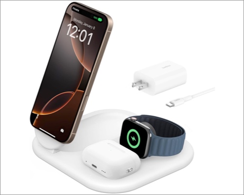 如果您正在為 Apple Watch、iPhone 和 AirPods 尋找一體化充電解決方案,貝爾金是一個不錯的選擇。這款可折疊支架具有多功能性,讓您可以在家中、工作中或旅途中輕鬆調整視角並為設備充電。